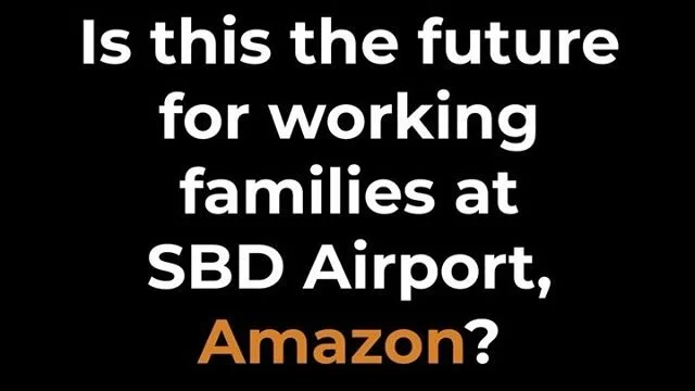 On Dec. 2, 2019 — Cyber Monday in America, hundreds of residents in San Bernardino and surrounding neighborhoods are holding a community picket line at a local Amazon warehouse, demanding a Community Benefits Agreement for the proposed regional air hub development at San Bernardino International Airport, which we believe to be in development for operation by Amazon. Residents are asking that the retail giant come to a binding agreement on guaranteed living-wage jobs with good working conditions, as well as strong air pollution reduction plans at the proposed facility (called “Eastgate”). Today, community members are “shining a light” on Amazon’s current stranglehold on working-class communities across San Bernardino and Riverside counties and its anticipated future at SB Airport.